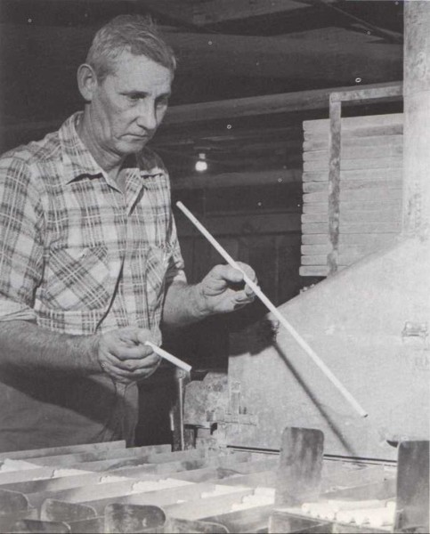 Cuando escribes con un trozo de tiza, estás escribiendo con una piedra. Pero se trata de una piedra que ha sido reducida a polvo antes de convertirla en una barra de tiza. Para fabricarla, se mezcla el polvo de yeso con otros ingredientes en un molde, de modo que pueda prensarse hasta darle forma de largas barritas. Otras veces, se hace pasar la mezcla de yeso por los agujeros de una máquina especial. Después se ponen las barritas en un homo hasta que vuelven a endurecerse y se cortan en trozos. Ya puedes escribir en la pizarra. |