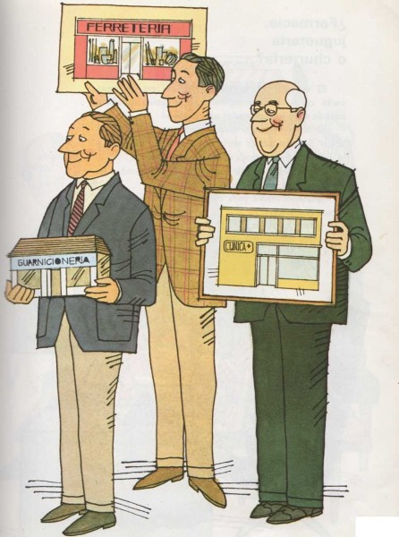 Cuando usted, Señor Alcalde, llega a la oficina el jueves, hay tres personas que le esperan. El señor Portales quiere instalar una guarnicionería, el señor Rosales desea instalar una ferretería y el señor Perales ha decidido instalar una clínica, con consultorios para médicos y dentistas. ¿Qué es lo que más necesitan los habitantes de su ciudad?: — ¿un lugar para consultar al médico y al dentista?, — ¿un lugar para comprar artículos de ferretería?, — ¿un lugar para adquirir artículos de guarnicionería? Decídase, Señor Alcalde: ¿qué edificio se va a construir ahora? |