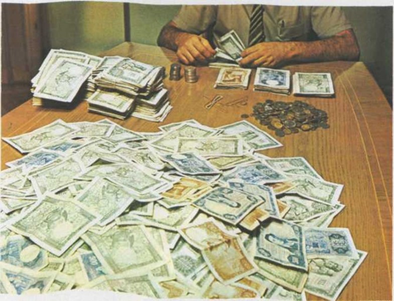 Los fabricantes de billetes de banco no revelan los procedimientos que emplean. Si observas con atención un billete, comprobarás que está lleno de extraños y complicados dibujos en color hechos con trazos muy finos, líneas que se entrecruzan, círculos, estrellitas, etc. Todos estos signos, tan difíciles de copiar y reproducir con exactitud, hacen casi imposible la falsificación de los billetes. Mirándolos al trasluz verás aparecer una figura en la parte blanca de algunos de ellos: a menudo, el rostro de un personaje importante. Se trata de impresiones mediante la técnica de la filigrana, la cual contribuye a dificultar aún más todo intento de falsificación. El papel que se ha empleado se fabricó para durar mucho tiempo y, por esto, no se rasga fácilmente. En efecto, el papel moneda, una vez impreso, se sumerge en un baño de cola, agua y alumbre que lo hace muy resistente. |