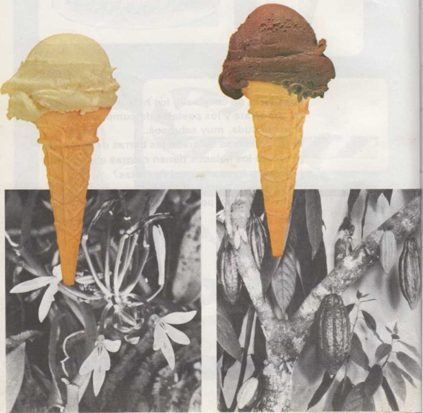 Para fabricar helado de vainilla, se añaden las vainas pulverizadas de una planta que crece en México y Madagascar llamada precisamente vainilla. |