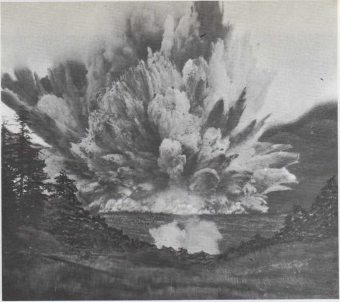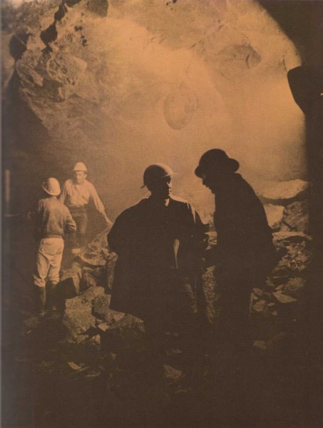 Primero se abren unos pequeños agujeros en la roca. Se introducen en ellos unos cartuchos de dinamita. Con gran estrépito, la dinamita explota y entre la lluvia de piedras y una nube de polvo aparece un agujero en la ladera de la montaña. Grandes tractores quitan los escombros. Los obreros siguen empleando dinamita y limpiando el terreno hasta que terminan de excavar el túnel que atraviesa de parte a parte la montaña.