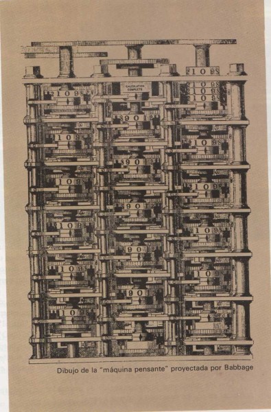 Si tú hubieras vivido en Inglaterra en el siglo xix y hubieras tenido la flaqueza de cometer errores de cálculo, seguramente hubieras deseado que no se enterara Babbage, pues inmediatamente se hubiera lanzado a la caza de tu error. Los contemporáneos de este matemático inglés cometían muchos errores en sus cuentas, y esto hacía enloquecer a Babbage. Un día, se puso a estudiar la manera de hacer una máquina que realizase los cálculos de una manera perfecta. También quiso hacer una «máquina pensante». Pero ello era demasiado complicado y requería gran cantidad de dinero y medios que Babbage no tenía. El gobierno inglés no quiso ayudarle porque el genio no gozaba de grandes simpatías debido a su carácter irascible.