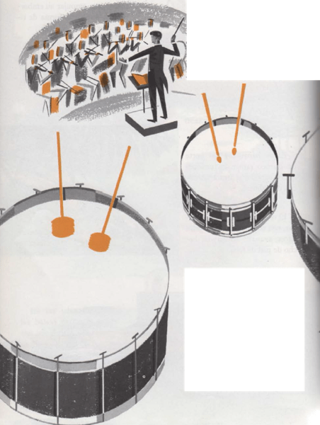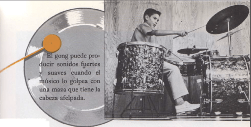Los músicos usan palillos, llamados baquetas, para batir el tambor, golpear el gong, etc… El director de orquesta utiliza un pequeño bastón, que se llama batuta, para dirigirla. El tambor se golpea con dos palillos o baquetas. El bombo se golpea con una maza, terminada en una cabeza blanda, que produce un sonido sordo y retumbante.