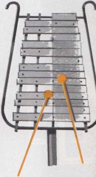 El batería de un conjunto no toca sólo con las manos, sino también con un pie. Apretando un pedal acciona una maza con cabeza afelpada que golpea el tambor. El timpanista bate el tímpano con dos palillos de cabeza afelpada. El glockenspiel produce un sonido parecido al de una campana cuando se toca con dos palillos de cabeza redonda, llamados mazas. Glockenspiel es una palabra alemana que significa «concierto de campana». Hay músicos que también usan mazas para tocar xilófonos y marimbas.