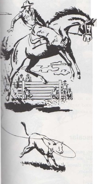 Cuando el cowboy debe salir a caballo a toda velocidad para atrapar una res, con las espuelas incita a su caballo para que salga al galope.
