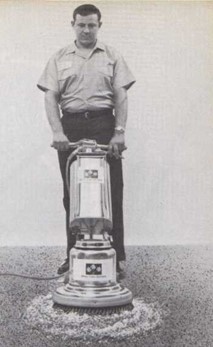 Los limpiadores de alfombras emplean una máquina que tiene un gran cepillo redondo en su extremo. El cepillo gira y al mismo tiempo vierte espuma detergente sobre la alfombra.