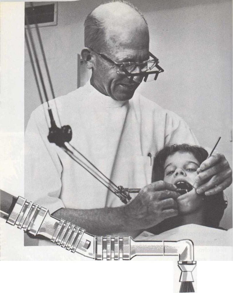 Cuando el dentista limpia los dientes, utiliza un cepillo redondo que gira velozmente accionado por un motor eléctrico. El cepillo produce un fuerte zumbido mientras gira y va limpiando los dientes. |