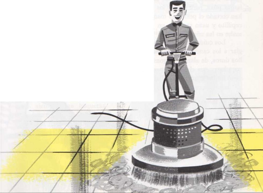 Para reparar el calzado el zapatero usa una máquina provista de una hilera de ruedas que giran. Unas son cepillos metálicos y otros cepillos blandos para dar brillo a los zapatos. Los empleados de las empresas de limpieza pulen y enceran el suelo con un aparato que lleva un gran cepillo rotativo. Para manipular esta máquina sin perder su control, es necesario conocer bien su funcionamiento y tener siempre la empuñadura firmemente sujeta.