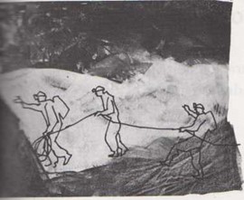Los alpinistas corren el riesgo de caer en profundos precipicios o en las grietas de las montañas. Si un alpinista cae en un precipicio profundo y resbaladizo, del que no puede salir por sí solo, otros escaladores le arrojan una cuerda para izarlo con ella. Si ha resultado herido, un hombre descenderá por la cuerda para ayudarle.