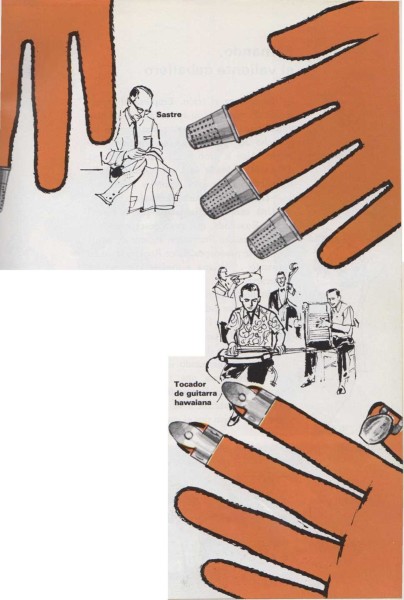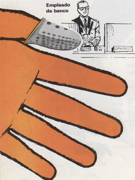 Los oficinistas a veces tienen que clasificar grandes montones de papeles. Si se ponen una pequeña caperuza de goma en el dedo, trabajan más fácilmente.