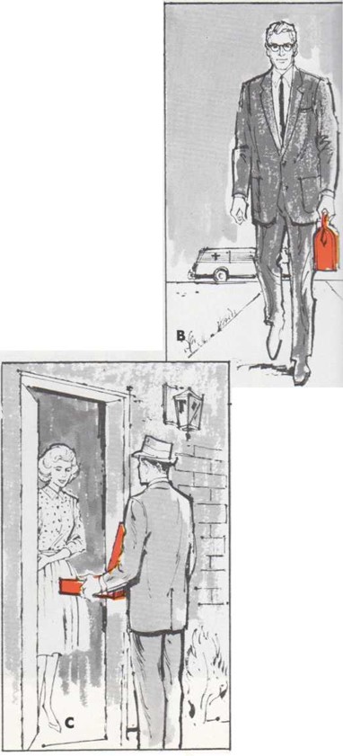 A. El carpintero trabaja en diferentes sitios. Tiene que llevar el martillo, la sierra, el taladro y otras herramientas consigo. Para ello, utiliza una gran caja de herramientas. B. Cuando el médico debe visitar a un enfermo, lleva consigo algunos medicamentos, el estetoscopio, un termómetro y otros instrumentos en un pequeño maletín. C. Los vendedores a domicilio llevan un maletín con el muestrario. Es un maletín corriente que contiene muestras de los productos que vende. |