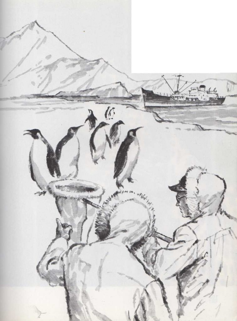 Para capturar pingüinos, se emplean grandes sacos colocados en el extremo de un palo.