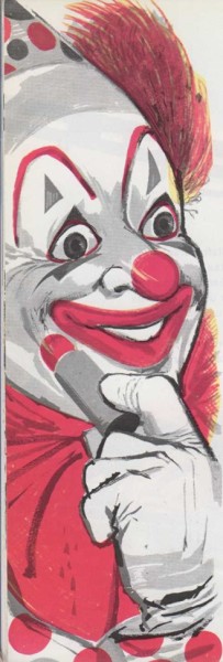 Una cara blanqueada con harina, una boca que parece extenderse de oreja a oreja, manchas de rojo en las mejillas, triángulos colorados en los ojos y cejas curvas y altas provocan siempre nuestra risa.