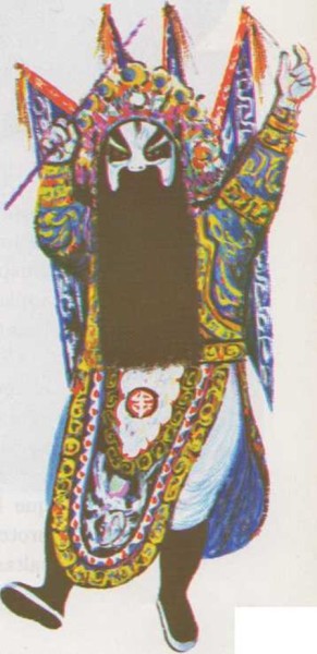 En las representaciones musicales chinas, los actores se pintan dibujos muy raros en la cara, como falsos ojos, una luna amarilla, espadas o manchas doradas, líneas onduladas y otras muchas cosas. Cada dibujo tiene un significado especial para los que conocen el teatro chino.