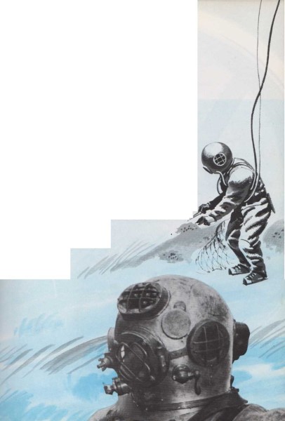 Los buceadores llevan estas máscaras. Los buzos se protegen con un casco metálico que les cubre enteramente la cabeza y va atornillado a su traje impermeable. El conjunto de su vestido se llama escafandra. Los buceadores y los buzos realizan los más variados trabajos. Unos descienden bajo el agua para fijar tubos y cables. Otros exploran el fondo del océano en busca de sitios donde puede haber petróleo, otros buscan ostras que tal vez contengan perlas, otros toman fotografías con cámaras impermeables, otros inspeccionan minuciosamente, a la búsqueda de posibles tesoros, los barcos hundidos, otros buscan esponjas, otros capturan peces con arpones, otros, finalmente, estudian los extraños peces multicolores, las rocas y las conchas, los diversos tipos de moluscos y las fantásticas plantas submarinas.