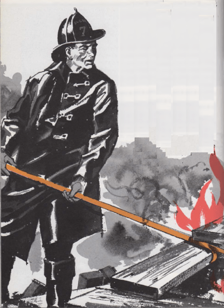 Ya sabes que en su cuartel los bomberos se deslizan por una barra para llegar más rápidamente a los coches. Pero ¿sabías que usan también un palo en el lugar del incendio? Se trata de un largo palo con una punta de metal y un gancho en un extremo. La punta sirve para empujar y el gancho para arrastrar.