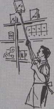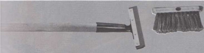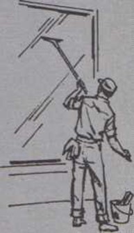 Para limpiar las grandes ventanas de los almacenes, el mozo de limpieza utiliza un largo palo con un cepillo o escobilla en uno de sus extremos.