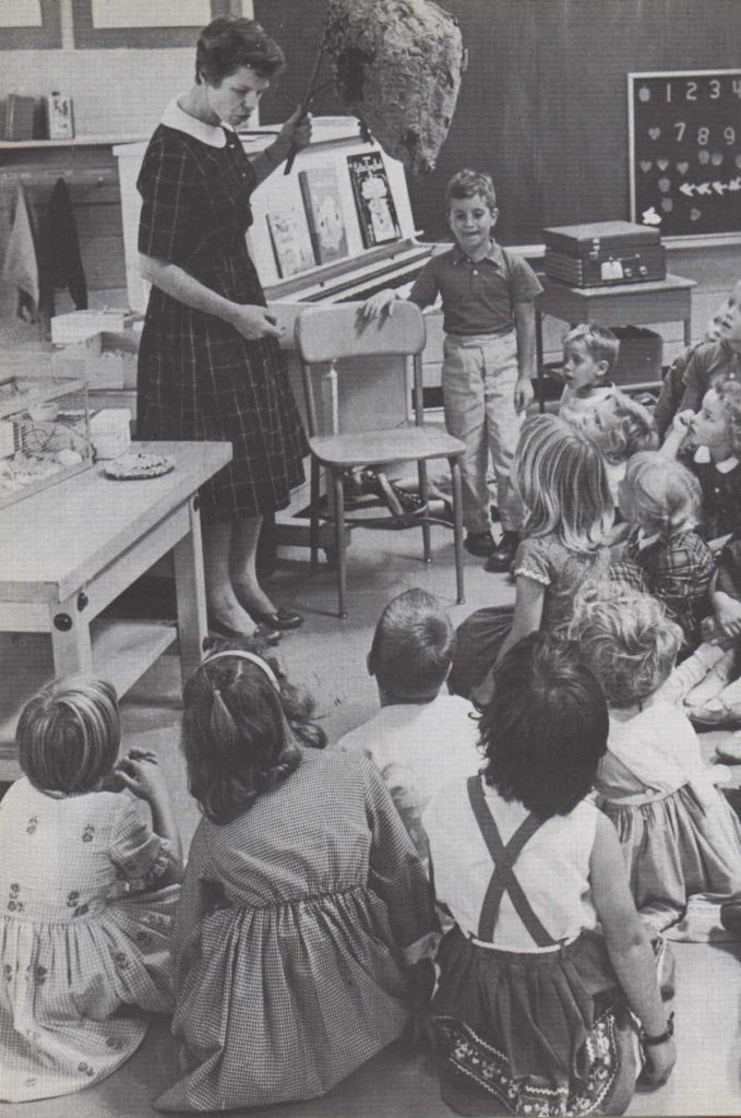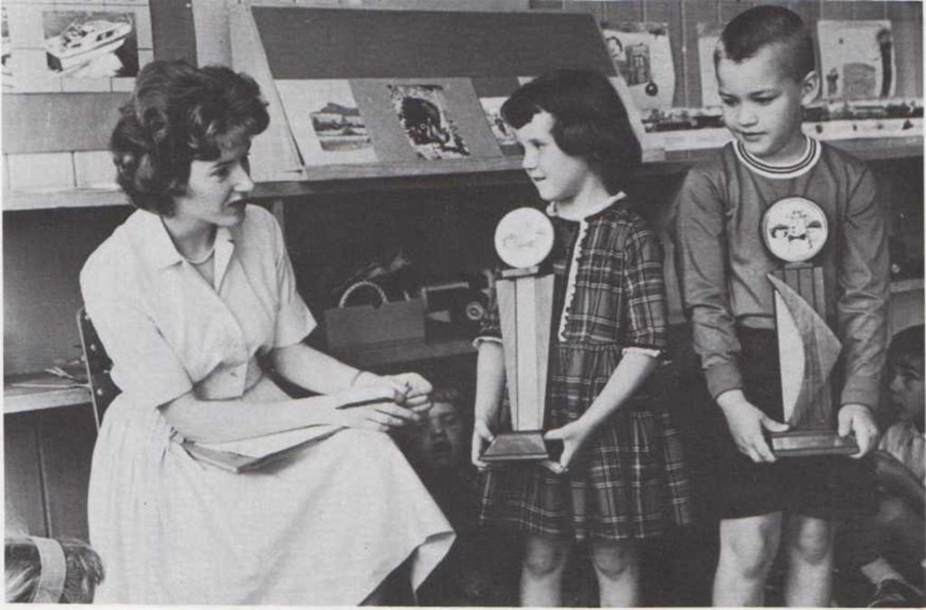 Para ayudarte a aprender, la maestra realiza muchos y diferentes trabajos. Escucha cuando lees un libro. Te ayuda a pronunciar las palabras difíciles. A veces lee relatos sobre reyes y palacios, pilotos y aviones, cowboys e indios. La maestra te enseña música. A veces toca el piano y te enseña a cantar. Tiene que hacer observar las reglas y mantener en orden la clase.