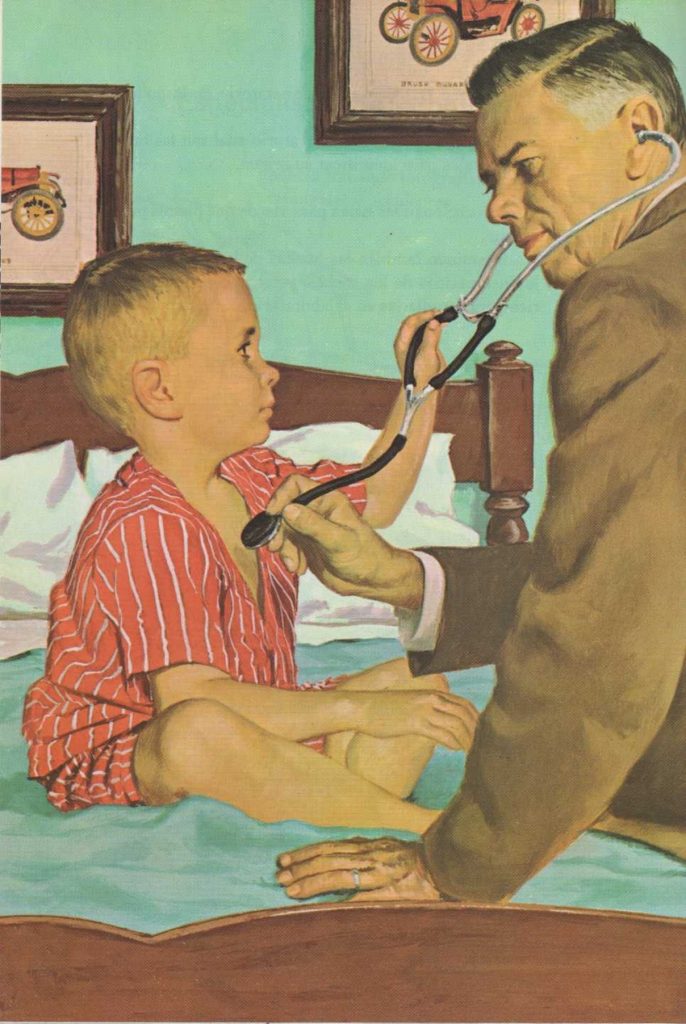 Normalmente, el médico visita a los enfermos en los ambulatorios u hospitales o en su consultorio. Pero a veces acude al domicilio de sus pacientes cuando éstos se encuentran muy enfermos y no pueden salir a la calle. Para una visita a domicilio, el médico lleva consigo un maletín con el estetoscopio, un termómetro y algunos otros aparatos. También suele llevar algunos medicamentos para casos urgentes. Después de la visita, el médico prescribe alguna medicina o tratamiento y el enfermo debe seguir estrictamente sus instrucciones.