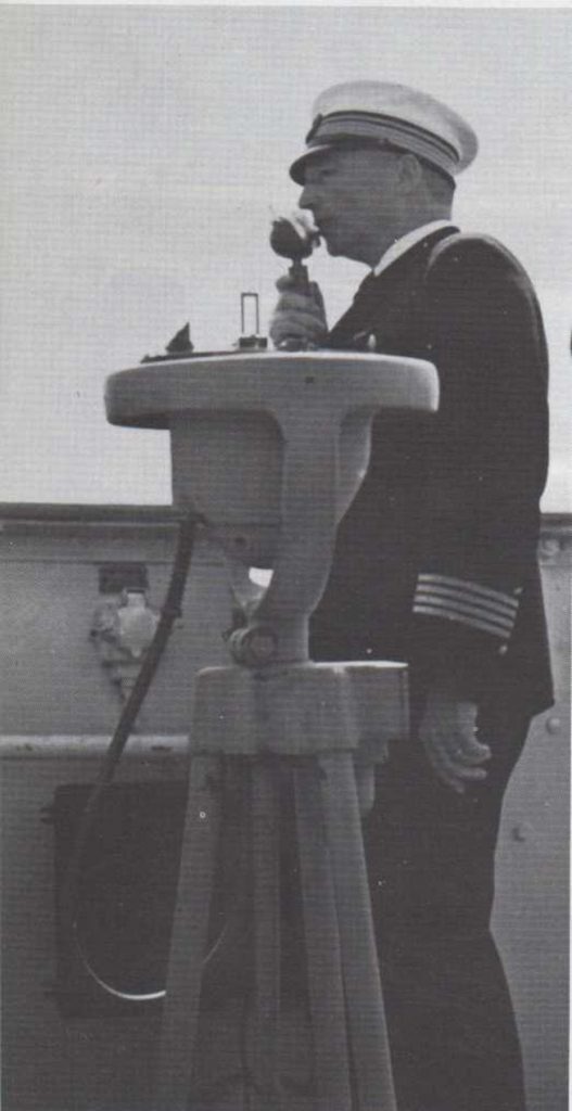 El capitán está al mando del barco y es el responsable de todo cuanto ocurre a bordo. En el puente de mando da órdenes a sus hombres por medio de un megáfono o un altavoz. Los oficiales de cubierta hacen tumos en el puente. Desde allí dirigen el rumbo del barco, observan el cielo y el mar y comprueban los instrumentos y cartas de navegación. |
