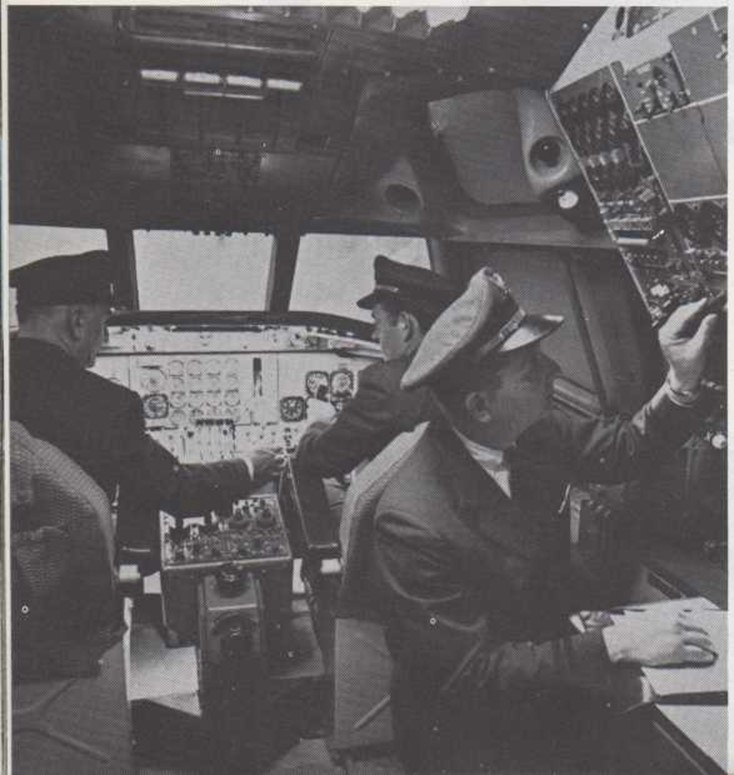 El comandante pilota el avión, ayudado por el copiloto. El mecánico de vuelo controla los aparatos y se asegura de que todo funciona perfectamente. En la cabina de pasajeros, las azafatas sirven comidas y se aseguran de que todo el mundo se acomode confortablemente. |