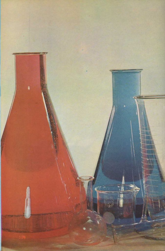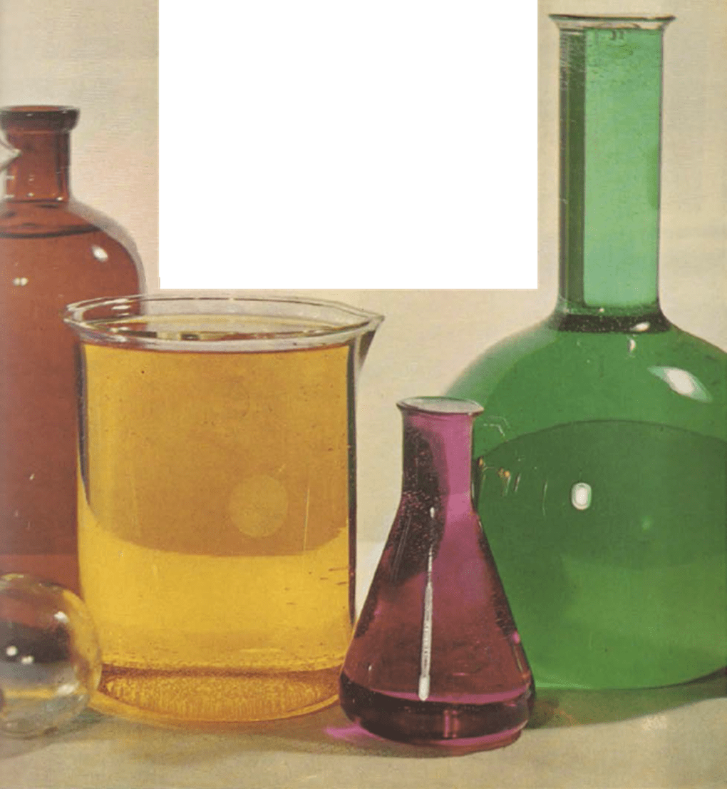 El químico mezcla varias sustancias para estudiarlas, transformarlas o preparar otras nuevas. Para ello utiliza diversos tipos de frascos y ampollas. Se sirve de frascos pequeños y muy resistentes, con tapón de cristal, para conservar ácidos y otros líquidos. Para medir la cantidad de un líquido usa una ampolla graduada. Para mezclar y calentar las sustancias químicas se sirve también de frascos y ampollas. El farmacéutico, además de vender productos elaborados en laboratorios, prepara él mismo elixires, pomadas y diversos polvos. Conserva en frascos de cristal o porcelana, que llevan escrito el nombre del producto, los diferentes ingredientes con los que prepara sus fórmulas.