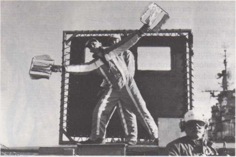 Cuando hace mal tiempo y el piloto no puede ver el espejo, el señalador lleva un vestido fosforescente y agita dos grandes palas para guiar al piloto en su aterrizaje.