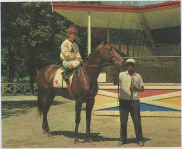 Cuando los jockeys montan a caballo en una carrera, llevan camisas de seda de colores brillantes. Los pantalones son blancos, pero las camisas y gorros son de colores brillantes. No hay dos jockeys que lleven el mismo color. ¡YA SALEN! Los caballos galopan por la pista. ¿Cómo se distingue un caballo de otro? Basta mirar el color de la camisa del jinete.
