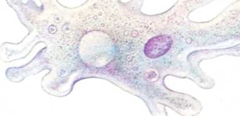 La ameba es tan pequeña que no puedes verla sin microscopio
